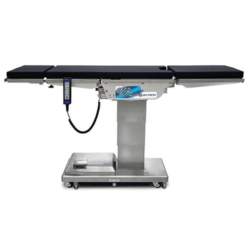 The Skytron 3602 is a surgical table with a 23-inch tabletop slide that allows patients to quickly and easily move through an imaging window. This is an electrohydraulically operated table with battery backup. The Skytron UltraSlide 3602 has a 1000 lb. lift and 800 lb. articulation capacity. The 4-point self-leveling braking system allows for stability on uneven floors. A narrow designed base provides toe space clearance to eliminate surgeon back strain.